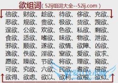 组词大全详解[欲组词]如:倍欲、财欲、趁欲、待欲、侈欲、充欲、恶欲、规欲、贵欲、极欲、货欲、觊欲、逞欲、公欲、欢欲、色欲、私欲、剩欲、食欲、适欲、嗜欲、味欲...