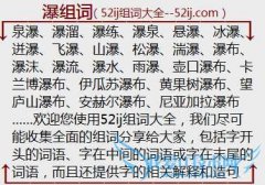 组词大全详解[瀑组词]如:泉瀑、瀑溜、瀑练、瀑泉、悬瀑、冰瀑、迸瀑、飞瀑、山瀑、松瀑、湍瀑、瀑布、瀑沫、瀑流、瀑水、雨瀑、壶口瀑布、卡兰博瀑布、伊瓜苏瀑布、...