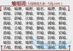组词大全详解[喻组词]如:诱喻、喻意、喻跗、喻名、喻愿、象喻、晓喻、训喻、善喻、审喻、深喻、托喻、喻旨、辟喻、比喻、换喻、共喻、嘿喻、讽喻、风喻、来喻、借喻...