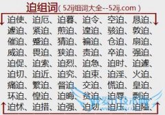组词大全详解[迫组词]如:迫使、迫厄、迫暮、迫令、空迫、恳迫、遽迫、紧迫、煎迫、遑迫、骇迫、敦迫、催迫、蹙迫、猜迫、褊迫、仓迫、扇迫、威迫、畏迫、狭迫、责迫...