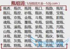 组词大全详解[瓶组词]如:瓶香、瓶供、瓶筲、瓶口、瓶隐、瓶笙、瓶玩、瓶窑、砂瓶、瓶钵、瓶簪、宝瓶、暖瓶、京瓶、金瓶、斗瓶、掸瓶、胆瓶、魂瓶、花瓶、覆瓶、电瓶...