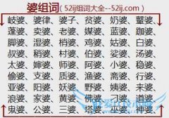 组词大全详解[婆组词]如:岐婆、婆律、婆子、贫婆、奶婆、鼙婆、蓬婆、卖婆、老婆、媒婆、蓝婆、跏婆、脚婆、湿婆、梢婆、鸡婆、姑婆、白婆、叔婆、稍婆、村婆、伯婆...