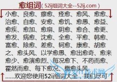组词大全详解[愈组词]如:小愈、良愈、瘳愈、痊愈、愈风、愈愈、治愈、自愈、安愈、愈饥、愈愚、愈益、愈疾、愈加、愈扇、阴愈、愈合、愈更、愈发、病愈、沈愈、全愈...