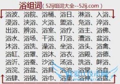 组词大全详解[浴组词]如:浴波、浴院、浴桶、浴日、淋浴、入浴、浸浴、浃浴、火浴、盥浴、凫浴、淬浴、出浴、辨浴、浴室、浴疗、浴主、浴佛、浴水、浴场、干浴、打浴...