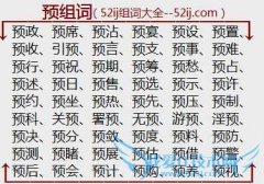 组词大全详解[预组词]如:预政、预席、预沾、预宴、预设、预置、预收、引预、预言、预支、预事、预难、预行、预祝、预期、预筹、预愁、预占、预述、预日、预售、预选...