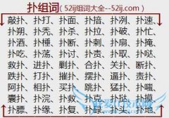 组词大全详解[扑组词]如:敲扑、扑打、扑面、扑揞、扑冽、扑速、扑朔、扑秃、扑杀、扑拉、扑破、扑忙、扑酒、扑棰、扑断、扑剌、扑扇、扑掩、扑吃、扑荡、扑讨、扑责...
