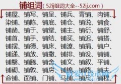 组词大全详解[铺组词]如:铺屋、铺写、铺呈、铺兵、青铺、肉铺、染铺、铺陈、铺底、铺仓、铺说、铺食、铺凿、铺于、铺堂、铺主、铺衍、铺舒、铺首、铺手、铺结、铺买...
