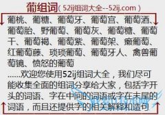 组词大全详解[葡组词]如:葡桃、葡糖、葡萄牙、葡萄宫、葡萄酒、葡萄胎、野葡萄、葡萄灰、葡萄糖、葡萄干、葡萄褐、葡萄紫、葡萄架、癞葡萄、红葡萄藤、琐琐葡萄、葡...