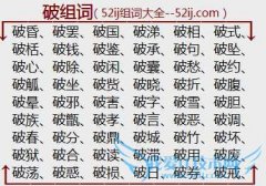 组词大全详解[破组词]如:破昏、破罢、破国、破涕、破相、破式、破栝、破钱、破鉴、破承、破句、破坠、破心、破除、破闲、破囊、破愁、破约、破觚、破坐、破赀、破晓...