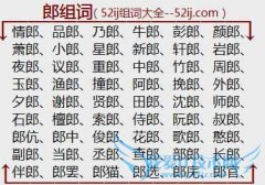 组词大全详解[郎组词]如:情郎、品郎、乃郎、牛郎、彭郎、颜郎、萧郎、小郎、星郎、新郎、轩郎、岩郎、夜郎、议郎、重郎、中郎、竹郎、周郎、玉郎、渔郎、撞郎、阿郎...