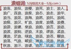 组词大全详解[浪组词]如:浪翁、浪投、浪梗、浪死、浪士、浪人、浪广、连浪、浪废、浪态、浪走、浪华、浪当、浪沤、浪海、浪然、浪抗、浪闻、浪痕、浪汉、旷浪、浪度...