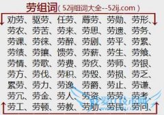 组词大全详解[劳组词]如:劝劳、驱劳、任劳、蓐劳、劳勋、劳形、劳农、劳苦、劳来、劳思、劳遗、劳务、劳课、劳徕、劳醉、劳剧、劳平、劳累、劳绩、劳攘、馈劳、劳薪...