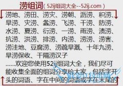 组词大全详解[涝组词]如:涝地、涝田、涝灾、涝朝、沥涝、积涝、旱涝、灾涝、螽涝、飞涝、干涝、防涝、水涝、夏涝、衍涝、一涝、雨涝、渍涝、抗涝、洪涝、排涝、内涝...