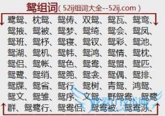 组词大全详解[鸳组词]如:鹭鸳、枕鸳、鸳俦、双鸳、鸳瓦、鸳鸾、鸳掖、鸳被、鸳梦、鸳绮、鸳会、鸳凤、鸳班、鸳杼、鸳寝、鸳钗、鸳彩、鸳池、鸳湖、鸳机、鸳帏、鸳鸿...