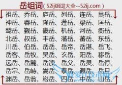 组词大全详解[岳组词]如:祖岳、乔岳、庐岳、列岳、连岳、艮岳、神岳、睿岳、隆岳、莲岳、梁岳、匡岳、鹫岳、觐岳、畿岳、机岳、河岳、衡岳、北岳、叔岳、丰岳、藩岳...
