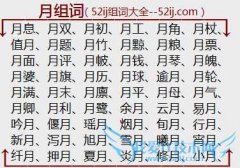 组词大全详解[月组词]如:月息、月双、月初、月工、月角、月杖、值月、月题、月竹、月黥、月粮、月票、月面、月评、月帔、月钱、月琴、月魄、月婆、月旗、月历、月球...