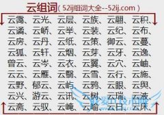 组词大全详解[云组词]如:云霭、云光、云层、云族、云翮、云积、云谲、云峤、云举、云装、云纪、云布、云房、云丹、云纸、云策、御云、云蔓、云狐、云轩、云烟、云芽...