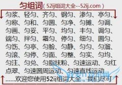 组词大全详解[匀组词]如:匀浆、轻匀、齐匀、钢匀、渗匀、亭匀、匀称、匀和、匀圆、匀净、匀摊、匀调、匀画、匀妥、平匀、均匀、丰匀、调匀、端匀、拌匀、霜匀、停匀...