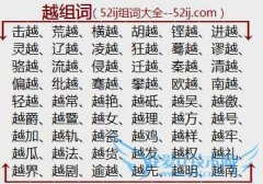 组词大全详解[越组词]如:击越、荒越、横越、胡越、铿越、进越、灵越、辽越、凌越、狂越、蓦越、谬越、骆越、流越、侵越、迁越、秦越、清越、偏越、纰越、骞越、攀越...