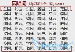 组词大全详解[园组词]如:丘园、沁园、乐园、蠡园、开园、蕉园、椒园、琅园、礼园、窥园、空园、李园、梁园、鹿园、留园、陵园、林园、漆园、潘园、淇园、柰园、梅园...