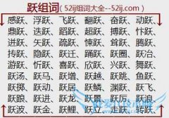 组词大全详解[跃组词]如:感跃、浮跃、飞跃、翻跃、奋跃、动跃、鼎跃、迭跃、蹈跃、超跃、搏跃、忭跃、迸跃、矢跃、疏跃、悚跃、耸跃、腾跃、抟跃、隐跃、跃迁、踊跃...