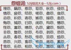 组词大全详解[怨组词]如:埋怨、瞒怨、惹怨、取怨、秋怨、侵怨、情怨、疲怨、结怨、嗟怨、徼怨、敛怨、忌怨、积怨、寄怨、嫉怨、嫁怨、恚怨、悔怨、缄怨、归怨、闺怨...
