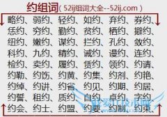 组词大全详解[约组词]如:略约、弱约、轻约、如约、弃约、券约、恁约、穷约、勤约、贫约、栖约、擗约、纽约、嫩约、谋约、拦约、孔约、敛约、科约、九约、精约、诫约...