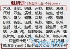 组词大全详解[魅组词]如:木魅、山魅、魍魅、遐魅、物魅、魇魅、厌魅、妖魅、病魅、魑魅、精魅、咎魅、魅力、魅乡、螭魅、沈魅、邪魅、魈魅、阴魅、谷魅、狐魅、鬼魅...
