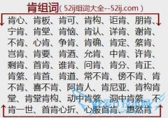组词大全详解[肯组词]如:肯心、肯板、肯可、肯构、讵肯、朋肯、宁肯、肯堂、肯恼、肯认、详肯、谢肯、不肯、心肯、争肯、肯确、肯定、綮肯、岂肯、肯要、肯酒、允肯...