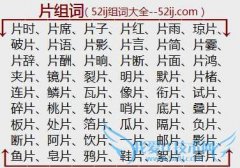 组词大全详解[片组词]如:片时、片席、片子、片红、片雨、琼片、破片、片语、片影、片言、片简、片霎、片辞、片酬、片晌、片断、片面、片鸿、夹片、镜片、裂片、明片...