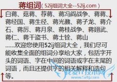 组词大全详解[蒋组词]如:白蒋、菇蒋、荐蒋、蒋冯阎战争、蒋蒋、蒋经国、蒋生径、蒋光鼐、蒋子龙、蒋介石、蒋厉、蒋月泉、蒋桂战争、蒋翊武、蒋仁、蒋干盗书、蒋士铨...