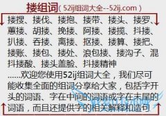 组词大全详解[搂组词]如:搂搜、搂伐、搂抱、搂带、搂头、搂罗、蕙搂、胡搂、挽搂、阿搂、搂揽、抖搂、扒搂、吞搂、离搂、抠搂、搂算、搂把、搂账、搂包、搂处、浪包...
