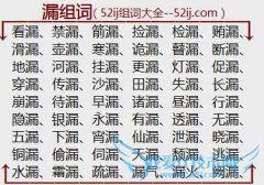 组词大全详解[漏组词]如:看漏、禁漏、箭漏、捡漏、检漏、贿漏、滑漏、壶漏、寒漏、诡漏、瞽漏、断漏、地漏、河漏、挂漏、更漏、灯漏、促漏、穿漏、传漏、沙漏、田漏...