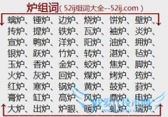 组词大全详解[炉组词]如:螭炉、锤炉、边炉、烧炉、饼炉、壁炉、抟炉、提炉、铁炉、瓦炉、袖炉、炎炉、宣炉、鸭炉、洋炉、阳炉、油炉、拥炉、银炉、跃炉、竹炉、转炉...