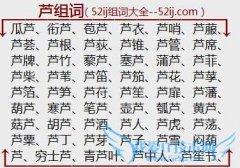 组词大全详解[芦组词]如:瓜芦、衔芦、苞芦、芦衣、芦哨、芦菔、芦荟、芦根、芦荻、芦锥、芦管、芦席、芦牌、芦竹、藜芦、塞芦、蒲芦、芦菲、芦柴、芦苇、芦笛、芦笳...