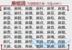 组词大全详解[麻组词]如:麻地、麻将、麻腐、麻秆、麻苇、麻紧、麻花、麻经、麻沸、麻笺、麻菲、麻裙、麻衰、麻鞋、麻事、麻姑、麻栎、麻钱、麻蓝、麻溜、麻屦、麻点...