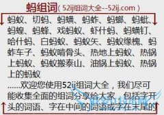 组词大全详解[蚂组词]如:蚂蚁、切蚂、蚂蟥、蚂蚱、蚂螂、蚂蚍、蚂蝗、蚂蜂、戏蚂蚁、虾什蚂、蚂蟥钉、哈什蚂、白蚂蚁、蚂蚁矢、蚂蚁缘槐、蚂蚱车子、蚂蚁啃骨头、热...