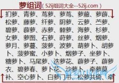 组词大全详解[萝组词]如:扪萝、青萝、茑萝、萝茑、萝菔、萝薜、松萝、藤萝、纤萝、阴萝、云萝、苎萝、碧萝、薜萝、赤萝、棘萝、海萝、杉萝、女萝、萝图、石萝、莳萝...