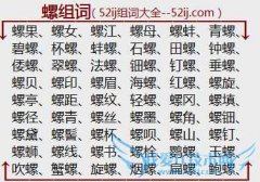 组词大全详解[螺组词]如:螺果、螺女、螺江、螺母、螺蚌、青螺、碧螺、杯螺、蚌螺、石螺、田螺、钟螺、倭螺、翠螺、法螺、钿螺、钉螺、垂螺、螺贝、螺印、螺眉、海螺...