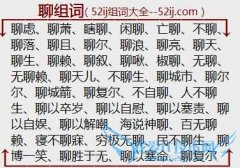 组词大全详解[聊组词]如:聊虑、聊萧、瞎聊、闲聊、亡聊、不聊、聊落、聊且、聊尔、聊浪、聊亮、聊天、聊生、聊赖、聊叙、聊啾、椒聊、无聊、无聊赖、聊天儿、不聊生...