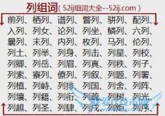 组词大全详解[列组词]如:前列、栖列、谱列、瞥列、骈列、配列、入列、列女、论列、列坐、鳞列、六列、曩列、末列、内列、枚列、马列、伦列、列土、列举、列身、列击...