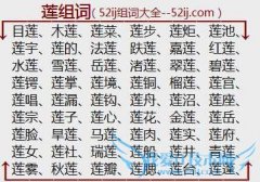 组词大全详解[莲组词]如:目莲、木莲、莲菜、莲步、莲炬、莲池、莲宇、莲的、法莲、趺莲、嘉莲、红莲、水莲、雪莲、岳莲、渚莲、翠莲、碧莲、莲锷、莲掌、莲境、莲铜...