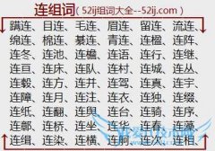 组词大全详解[连组词]如:蹒连、目连、毛连、眉连、留连、流连、绵连、棉连、綦连、青连、连楹、连阵、连冬、连池、连檐、连语、连行、连继、连亘、连床、连队、连村...