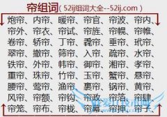 组词大全详解[帘组词]如:炮帘、内帘、暖帘、帘官、帘波、帘内、帘外、帘衣、帘试、帘旌、帘幌、帘帷、卷帘、轿帘、丁帘、毳帘、垂帘、玳帘、翠帘、撤帘、筛帘、入帘...