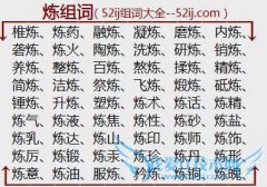 组词大全详解[炼组词]如:椎炼、炼药、融炼、凝炼、磨炼、内炼、砻炼、炼火、陶炼、洗炼、研炼、销炼、养炼、整炼、百炼、熬炼、揉炼、精炼、简炼、洁炼、祭炼、飞炼...