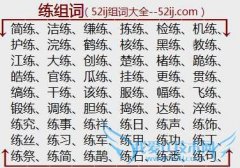 组词大全详解[练组词]如:简练、洁练、缣练、拣练、检练、机练、护练、浣练、鹤练、核练、黑练、教练、江练、大练、创练、楚练、楮练、跪练、皓练、官练、瓜练、挂练...