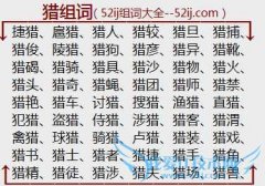 组词大全详解[猎组词]如:捷猎、扈猎、猎人、猎较、猎旦、猎捕、猎俊、陵猎、猎狗、猎彦、猎异、猎靴、猎碣、猎骑、猎具、猎沙、猎物、猎火、猎头、猎奇、猎蝇、猎团...