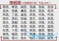 组词大全详解[洛组词]如:青洛、辇洛、闽洛、洛诵、洛尾、洛泽、洛水、洛桑、濂洛、洛克、洛派、洛灵、拜洛、三洛、咸洛、许洛、中洛、作洛、洛京、洛伯、洛涧、洛叉...
