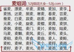组词大全详解[麦组词]如:雀麦、漂麦、牟麦、麦精、麦加、麦李、麦饧、还麦、黑麦、寒麦、春麦、尝麦、蚕麦、白麦、菽麦、宿麦、燕麦、油麦、元麦、小麦、旋麦、麦樱...
