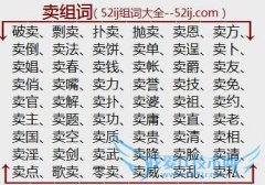 组词大全详解[卖组词]如:破卖、剽卖、扑卖、抛卖、卖恩、卖方、卖倒、卖法、卖饼、卖单、卖逞、卖卜、卖娼、卖春、卖钱、卖帐、卖爵、卖友、卖俏、卖嘴、卖力、卖誉...